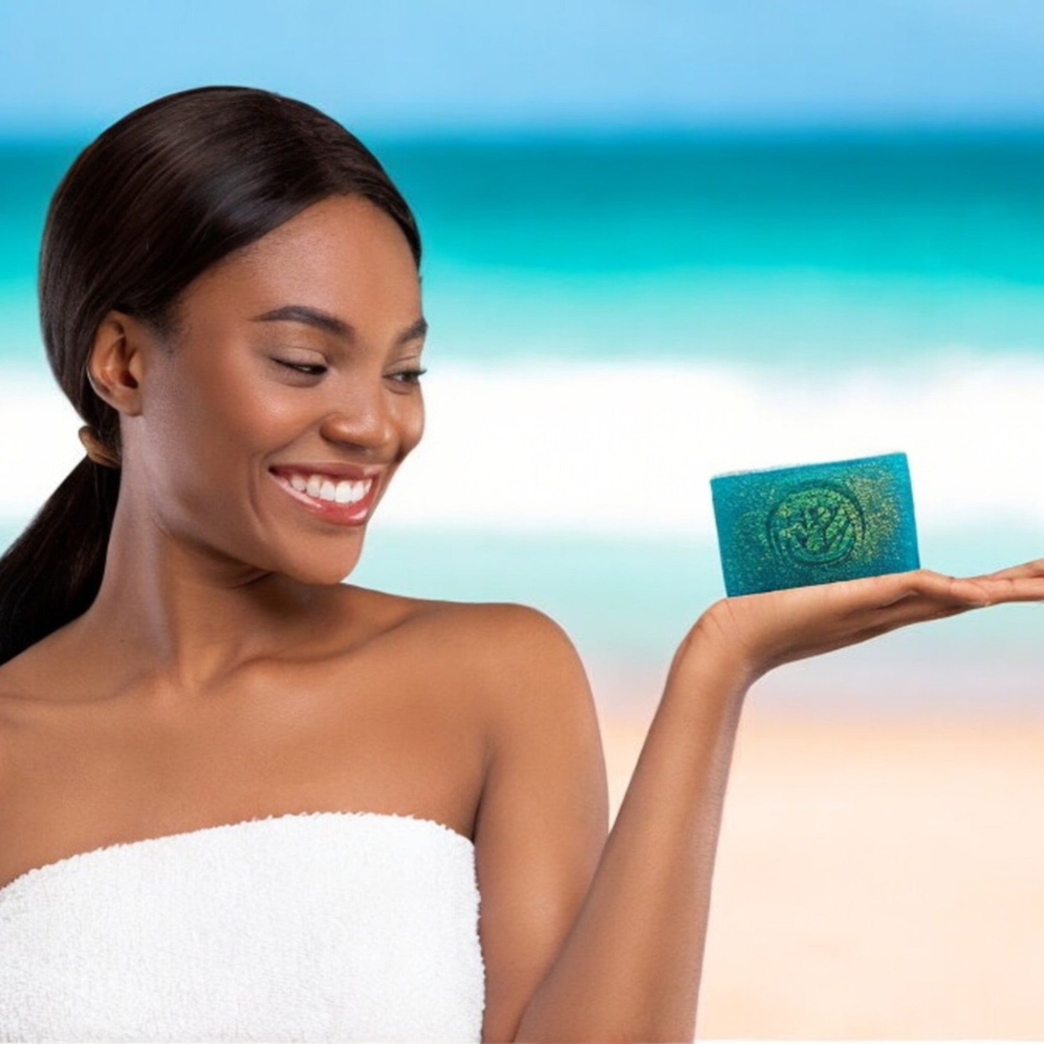The gentle foam and exfoliation granules whisk you away to serene shores with its crisp ocean breeze scent, ensuring every cleanse feels like a rejuvenating dip in the sea. Dive into pure indulgence and emerge with skin that's soft, hydrated, and glowing with natural beauty from our handcrafted Ocean Breeze Sea Moss & Cornflower Soap.